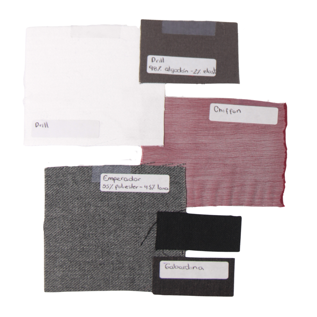 Esto tambien ocurre en las telas, donde se usan transparencias que reflejan la vulnerabilidad del ser, pues permite ver el cuerpo; las gabardinas y paños por el contrario, siendo telas más gruesas que protegen como una armadura y convierte al portador en alguien más fuerte.